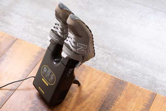 ただし、2足同時に乾かす際は、両方同じぐらいの高さに履き口がないとノズルの置き場所が安定しません。筆者も最初は上手く靴の中に風を当てられなかったので、短時間でしっかり乾かしたいときは1足ずつにしたほうが良さそうです。