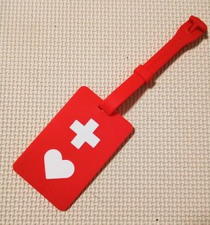 「義足や人工関節を使用している方、内部障害や難病の方、または妊娠初期の方など、外見から分からなくても援助や配慮を必要としている方々が、周囲の方に配慮を必要としていることを知らせることで、援助を得やすくなるよう、作成したマークです」 ——東京都福祉保健局HPより 赤字に赤十字のようなマークとハートのついたストラップです。