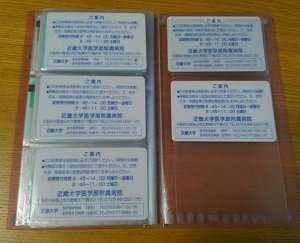 わが家で愛用しているのがこちら。20年前に近所の商店街で購入、うろ覚えですが100均で購入しました。そのころから名刺のサイズは変わっていませんので、こうして20年以上、かわらず使用しています。これからも名刺のサイズはよほどのことがない限り変わるとは考えられないので、この100均の名刺入れで診察券の管理は長く活用できると期待できますね。