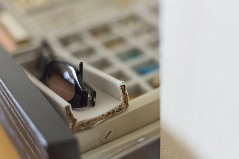 L字型のブックエンドも、引き出し内の仕切りとして活用中。 「収納するものが定まっていないスペースを自由に区切ることができるのがいいところ。安定感もありますし、しまったものに合わせて、すぐに移動できるのもいいところですね」