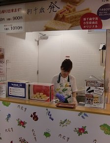新千歳空港でも、ひんやりサクサクの六花亭スイーツを購入できます。「サクサクパイ 新千歳発」。ホワイト生チョコで包まれたハスカップチーズクリームが、サクサクのパイでサンドされています。なんと、新千歳空港にある「スカイショップ小笠原」限定商品だそう。こちらは保冷バッグでお持ち帰りOKなのがうれしい。ただし、お召し上がりは当日中に、とのこと。注文を受けてから、空港売店内のキッチンで作ってもらいます。その場で食べるのが一番美味しそう。
