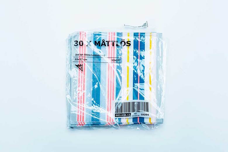 「ちょっとした軽食なら、我が家ではナプキンをプレートがわりにして使っています。ナプキンのカラーリングも、北欧テイスト。色使いがとてもカラフルです。北欧は冬が長いので、気が滅入らないようになんですかね」
