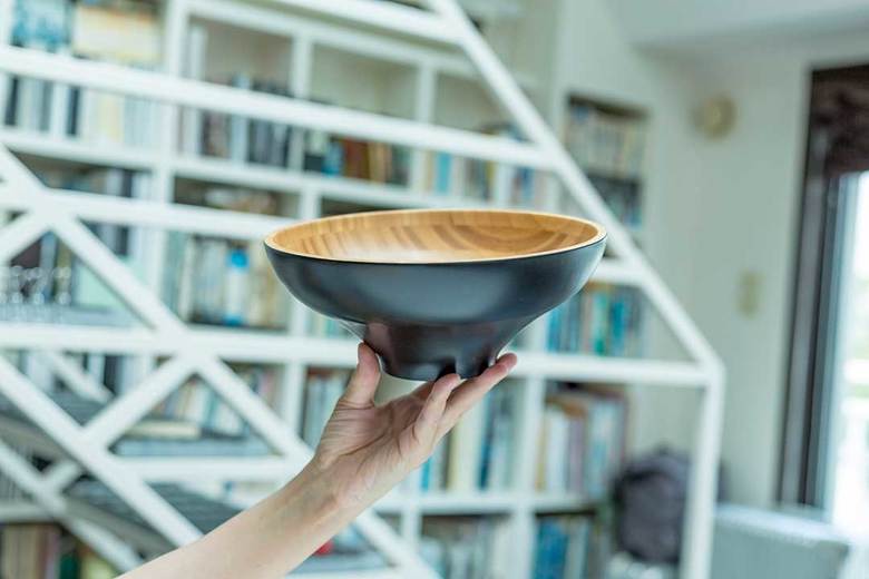 イケアで食器を見ていると、とてつもなく気分にあった食器に出合えることがあります。 「こちらもそのひとつ。シックなブラックベースの鉢のようなデザインが少し日本ぽい感じです。イケアではいいと思ったらその場ですぐ買わないと、店頭からいきなり消えたりするので…(笑)」