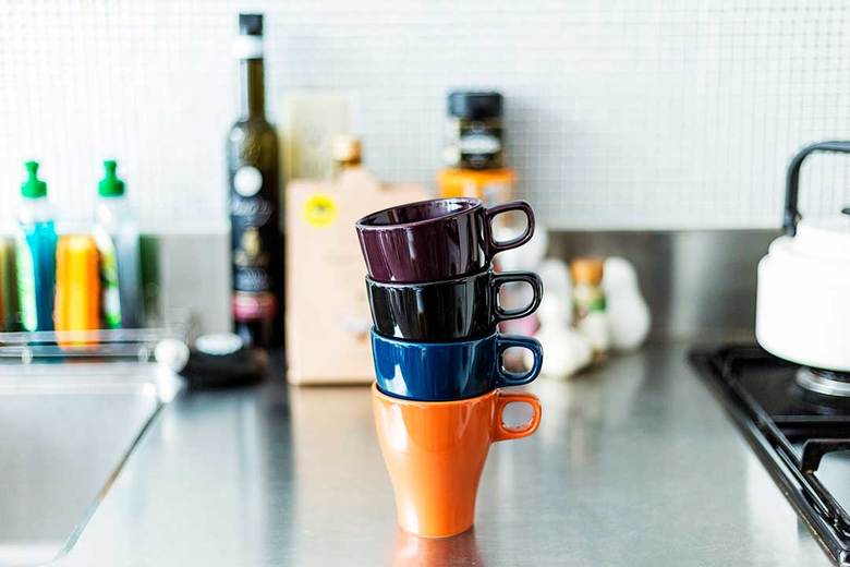 なんと100円以下という驚愕の価格のマグカップ。その上、流線型を描く素敵なデザインには脱帽です。森井さんはいつもチェックし、お気に入りのカラーが出るたびに揃えているとか。