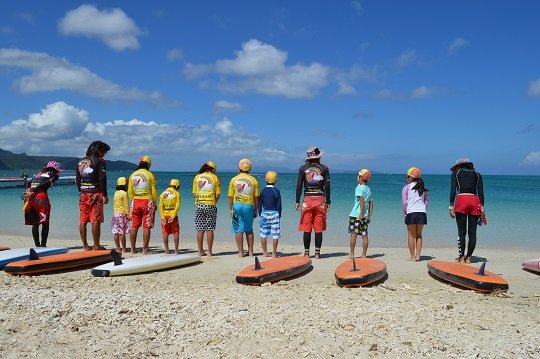 本格的にサーフボードを使ってパドリングを教えてもらいました。体力的にハードな体験でしたが、運動好きの長男はヘトヘトになりながらも、とても充実した表情をしており、良い経験をすることができました。遊びじゃない、冒険色の濃いとてもよいスクールでした。教えてくれる先生方もライフガードの資格を持ってる方たちだったのもで本格的な内容だったのだと思います。「オクマJr.ライフガードプログラム」という名称で今も行っているようです。これ、本当におすすめです。