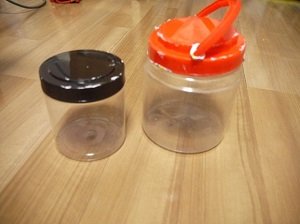 この2つの容器、何だと思いますか?もともとは海苔が入っていたものとするめの容器です。