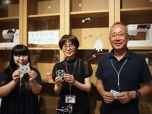 ワークシップが開催されたのは、ものづくり館の1階でしたが、2階には学び舎という、ファスナーの歴史や仕組みが学べる展示コーナー(見学自由)があります。壁面に様々なファスナー見本が展示されていて、まるで前衛アートのように個性のあるもの、アクセサリー素材の様に光沢感が素晴らしいものなど、まさにファスナーのワンダーランド! 見ている方も感心しっぱなしでした。そして触ってファスナーの仕組みが学べる「ビッグファスナー」や、過去のワークショップで作成された作品展示などもあり、ファスナーの魅力を存分に堪能することができました。小中学生なら、「ワークショップに参加」⇒「学び舎の展示を見る」のコースで、夏休みの自由研究と工作作りが両方出来ると思います。ここは大人も子供も楽しめるので、次回は絶対「親子で来たい」と思いました。