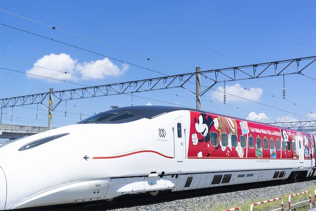 女の子もテンションが上がっちゃう、ミッキーマウス&ミニーマウスデザインの「JR九州 Waku Waku Trip 新幹線」が展示されます。これは、シャッターを押す手が止まらなそう。(※天候または列車の運行状況により、ミッキーマウス&ミニーマウスデザインの車両でない場合がございます。あらかじめご了承ください)