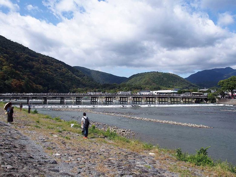 嵐山駅から徒歩5分ほどで嵐山観光のハイライトである渡月橋が見えます。天龍寺や竹林の道へ行く際は渡月橋を渡ります。オンシーズンになると渡月橋は大混雑し、写真を撮影するのが難しい状況に。子どもにとってツライ時間になるかもしれません。混乱を避ける意味でも、渡月橋の写真は「渡る前」もしくは「渡った後」にしましょう。