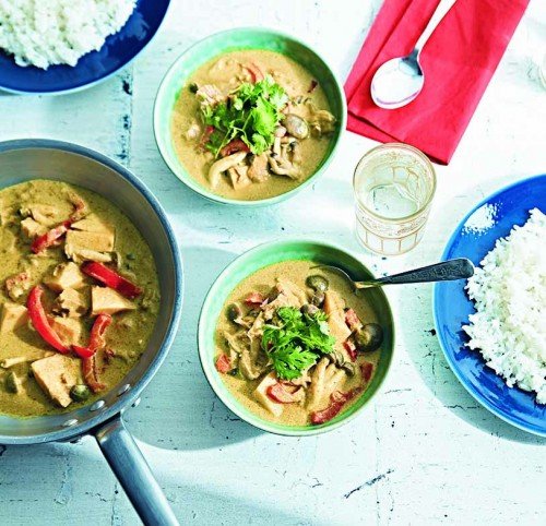 ①たけのこは乱切りに、パプリカは縦半分に切って横5㎜幅に切る。しめじは石づきをとり除いて、食べやすくほぐしておく。②フライパンにツナを油ごと入れ、①を加えて強めの中火で軽く炒め合わせる(油はねに注意)。③カレー粉を加えてさらに炒める。ココナッツミルクと塩を加えて煮立てたら弱火にし、1~2分煮て火を止め、レモン汁を加えて混ぜる。④③とご飯をそれぞれ器に盛り、1㎝程度に切ったパクチーをのせて、カレーをご飯にかけながらいただく。