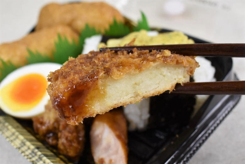 ご飯を堪能したところで、おかずも実食。ホクホクのコロッケが、濃厚なソースとマッチして絶妙な味わいを生み出しています。また、スパイシーなカレー風味が際立つカレーちくわ天もいい感じ。他にもウインナーや半熟ゆで卵などご飯によく合うおかずが勢ぞろいしており、バラエティ豊かな味を楽しむことができました。