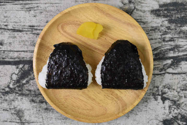 パッケージを開けると、のりで巻かれた三角形のおむすびが2つお目見え。大きさは手のひらサイズで持ちやすく、“The おむすび”といった印象です。具材は“鮭・梅おかか”と王道のようですが、見た目だけではどちらに何が入っているのかわかりません。