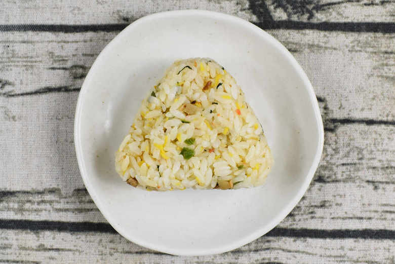 丸型のおむすびの上には、3種のチーズ(モッツァレラ・チェダー・パルメザン)がたっぷりとかかっています。表面をこうばしく焼き上げているようで、なんとも美味しそう。ご飯はペッパーをきかせた“ターメリックライス”が使われていました。