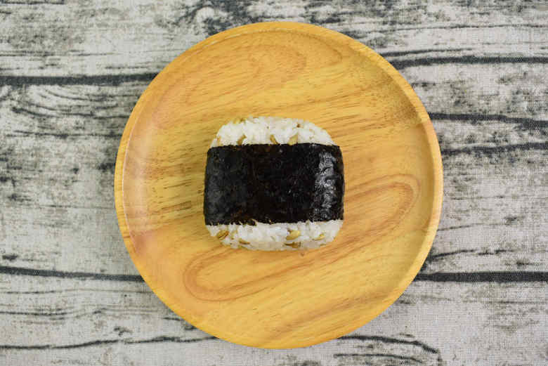 おにぎりを食べ進めていると、中心からなんと“かんぴょう椎茸煮”が登場。砂糖と醤油で味つけされたかんぴょう椎茸煮は、甘酸っぱい酢飯と相性抜群です。数種類の具材が混ぜ込まれているおかげで、少し贅沢な気分を味わえるかもしれません。