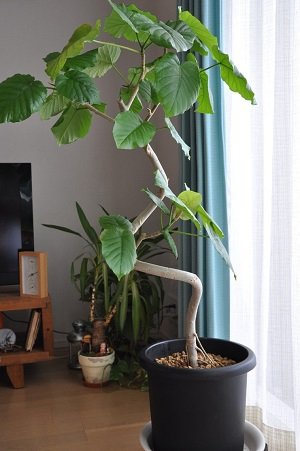 ウンベラータは、おしゃれな家に高い確率で見かけるので、私も!と安易に購入したのですが(笑)、いまや家のインテリアの一部となり、すくすくと育ってくれています。今年、植え替え作業を家族で行い、ひとまわり大きい鉢になりました。ユッカ(ウンベラータの後ろにちょっと写っています)は、結婚祝いでいただいてもう何年も経つのですが、水やりだけで元気に育ってくれています。二度の引っ越しにも新婚旅行中の放置状態にも耐えてくれました。