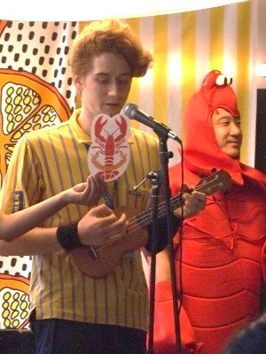 そして乾杯に続くのですが、スウェーデンでは「ヘーラン ゴール(乾杯の歌)」を歌って乾杯をするとの事で、スウェーデンから来日しているスタッフがスウェーデン語で歌と演奏を披露してくれました。彼に合わせて皆で歌って乾杯し、早速噂のザリガニに一斉に手を伸ばしました。