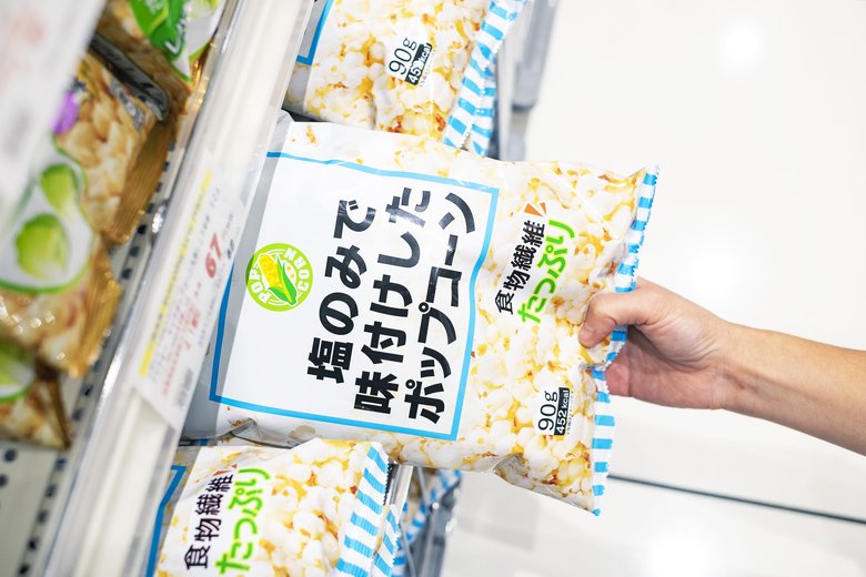 こちらのポップコーンは、メーカー・ジャパンフリトレーと協力して作られたもの。名前の通り、塩だけで味付けされているシンプルな味わいなので、延々と食べていられそうなくらいです。そして特筆すべきは、やっぱりこの価格でこの容量!