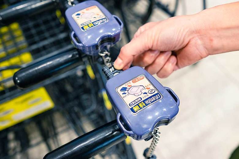 買い物カートは、「100円を入れてカートを引き出し、片付けたら100円が戻ってくる」という仕組みを採用。駐車場がある店舗などはとくに、駐車場で放置されているカートを片付けるために人員が必要となるため、その人件費を削る対策としてこちらが導入されたそう(一部の店舗のみ)。
