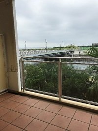 まずは、ゲストルームですが四つのベッドがあるさわやかな内装です。お部屋もきれい!お風呂、トイレもそれぞれ十分な広さでした。オーシャンフロントのお部屋だったので、テラスから海も見ることができまし た。