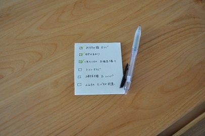 毎回呼ぶ前に「次どこ掃除しよう?」「あそこの片づけ忘れてた!」とやっているのは時間のムダ。リストを作っておいて、その通り忠実に行えば手をとめることもなく、テキパキこなせます。リストがあるだけでこれがあると片付く!人を呼べる!という安心感も生まれますよ。たとえば・・・例)・おもちゃ箱まわりのほこり&汚れチェック ・洗面所の鏡、蛇口まわりをふく(案外目立ちます。これをやっていると清潔な印象に♪) ・見られたくないもの・触れられたくないものは移動、カバーをかける (洗濯ものも気になるようであれば見えないように。陶器の置物などママに気を遣わせてしまうものもあればしまう) ・(小さい子が来るのであれば)危ないものはないか? ・トイレ掃除(ペーパーも十分にある?) ・掃除機をかける ・食べ物、飲み物、食器類を出しておく(事前準備で慌てません☆)