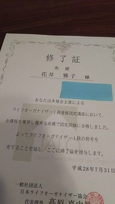 ②のライフオーガナイザーというのは、思考と空間の整理のプロの資格です。