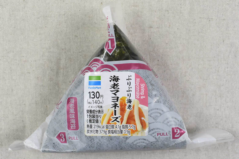 ちょっとお腹が空いた時、手軽に食べることができるおにぎり。様々な種類が販売されている中、ツナマヨや明太子マヨなどマヨネーズ風味も人気ですよね。そこで今回は、ファミリーマートで販売されている「海老風味海苔 海老マヨネーズ」(税込140円)をご紹介。