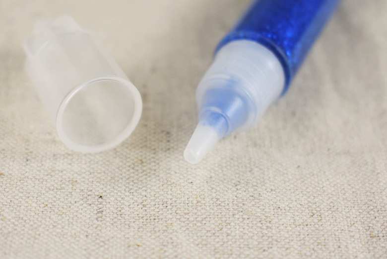 チューブを押してみたところ、ゆっくりとラメ入りののりが出てきました。急に中身が飛び出すこともないため、描きやすさバツグン! なお描いた部分は、約30分くらいで乾きます。のりを盛ってデコレーションした場合、おおよそ8時間ほどで乾燥する模様。