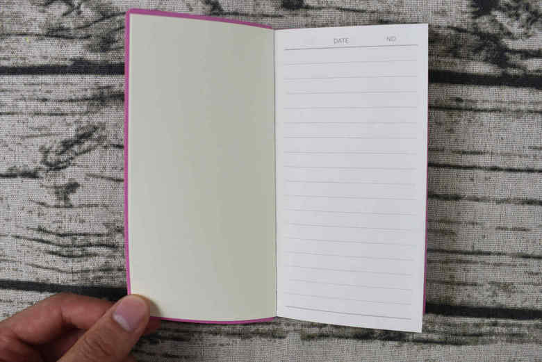 続いてノートを開いてから書き心地もチェックします。紙は7mm幅で罫線が引かれていて、大きめに文字を書いても余裕がありそう。ノートを手に持った状態で文字を書いてみると、背中のカバーがしっかりしているおかげで字が全くブレません。レビュー後には、さっそくオシャレ&便利を実現した同商品の虜になってしまいました…。