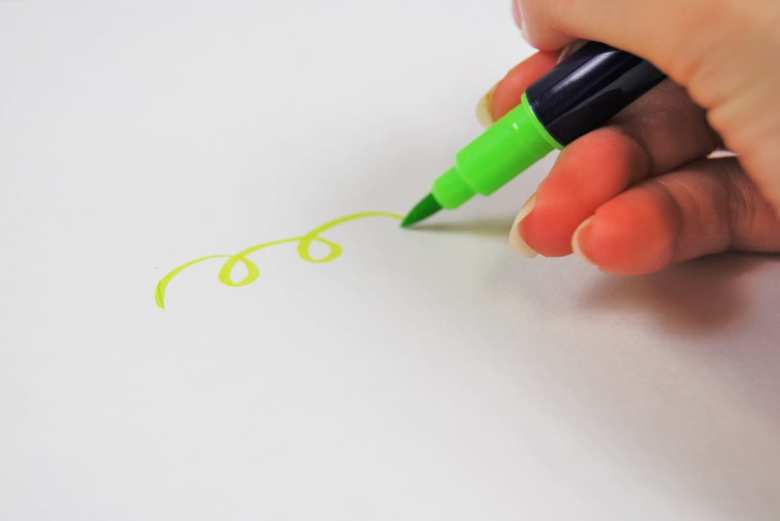 不安な気持ちを胸に、ペンを斜めに持ってそのまま横にスライド。すると、ボールペンで書いたかのような細い線がしっかりと引けました。どうやら星形の一角が、ペンの先端としての役割を果たしているよう。通常のマーカーより線が細いため、小さい文字を書くこともできます。水性インクなので、弱い筆圧でもスラスラ書ける上に発色も抜群です。