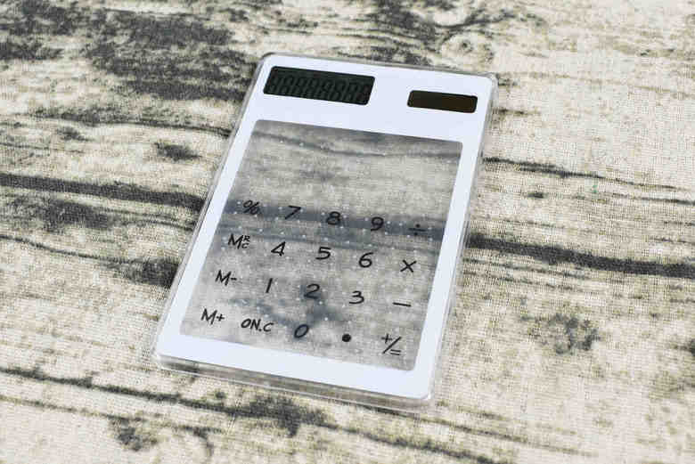 透明な見た目から、電卓と言われなければ何の機械かわからない人もいるかもしれません。しかしこちらは、電池いらずのれっきとした電卓。その秘密は電卓右上の黒い部分にあります。黒い部分は小型の「ソーラーパネル」となっており、明るい場所に置いておくだけで電卓が稼働してくれるんです。
