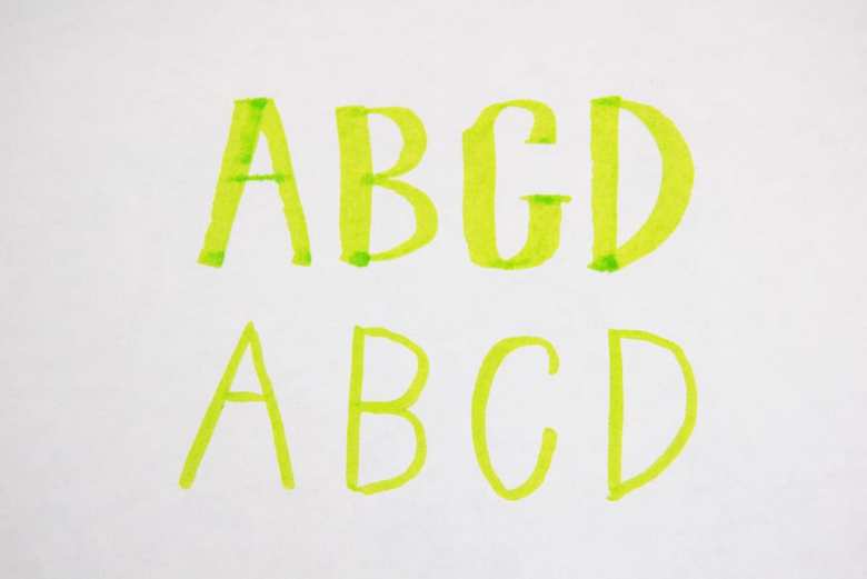 次はフラットタイプ側を使ってみたいと思います。線に強弱をつけたり“太めの文字”が書けるため、筆芯タイプよりもアルファベット向き。しかしフラット側は、書くのに少しコツがいるため練習が必要です。手帳やカレンダーを可愛くデコレーションするなら、しっかりとフラットペンの使い方もマスターしましょう。