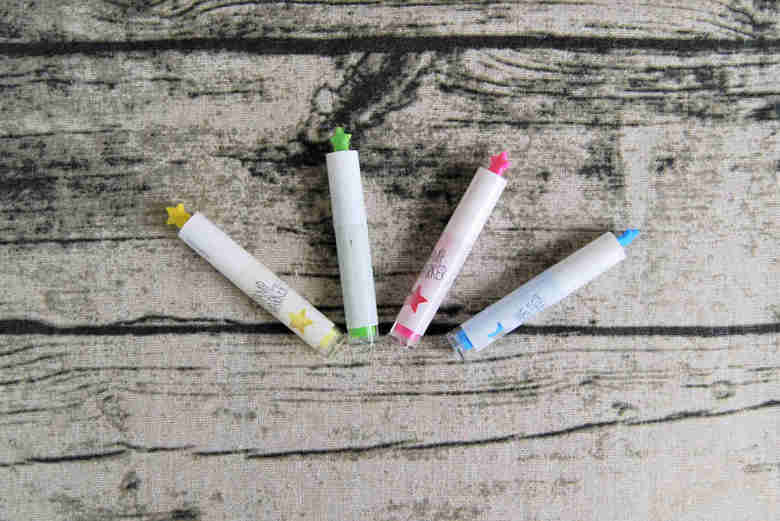 パッケージに入っている4本のペンは、「黄緑色・ピンク色・黄色・水色」の明るい色彩で統一されています。リップクリームのような形状と、上部に刺さっている「星」がキュートさを演出。全長約9.5cmほどのコンパクトなボディは、筆箱やカバンに入れてもかさばりません。さらに「星」の部分を取り外せば手の平サイズに変身。小さい子どもが持っても違和感のないサイズ感に、愛着が湧いてきますね。