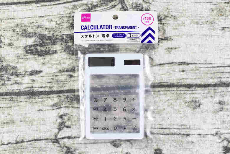 ソーラーパネルで稼働する、薄型の電卓があったら便利ですよね。まず最初にご紹介するのは、150円で購入してきたダイソー「スケルトン電卓」。近未来的な見た目がカッコいい、スケルトンな電卓です。