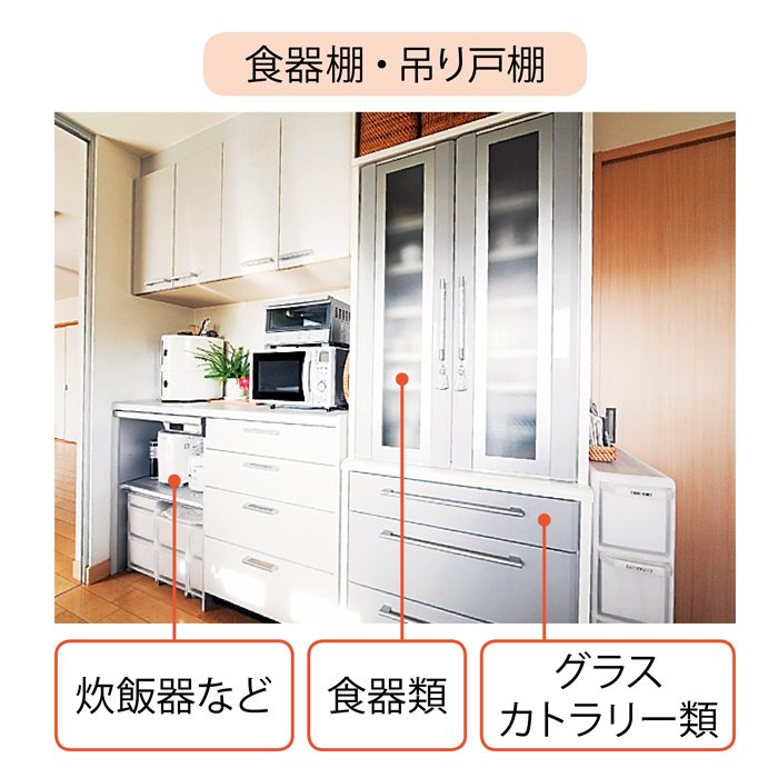 調理家電とカトラリーなどテーブルセッティングに使うものを配置。「ストック食材もこのゾーン。かためておくと在庫確認もすぐ」