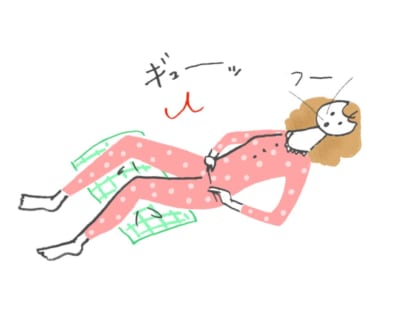 3.息をゆっくり吸いながら、全身の力をぬき、膣をゆるめます。腹横筋がゆるむのを感じてください。