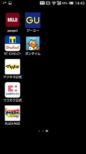 私はスマホの3画面目にポイントカード系のアプリをを閲覧できるようにしていますが、普段よく使うもののみに絞っています。無印、GU等はしょっちゅう使用するから、すぐに出せるようにしています。