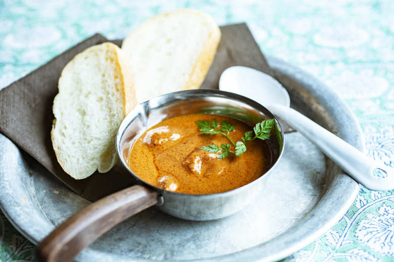 「後乗せのスパイスって、テンションがあがりますよね!好みでスパイスの量を調整できるのもいいです。香りのスパイスは、カルダモン。清涼感のある独特ないい香りが漂います。ライスと一緒に食べるのはもちろん、ゆでたパスタにかけてカレーパスタにしても。さらっとしたスープなので、グリル野菜にかけてアレンジするのもオススメです」