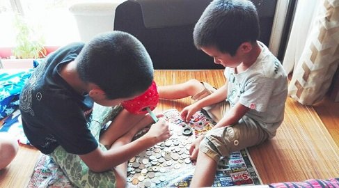 次に長男が目を付けたのが、祖母の家にある貯金箱。いやいや、祖母の懐をあてにしようとしたのではなく、こどもたちがおばあちゃんのお手伝いをしたり、似顔絵を描いてあげたり、ビンゴで勝ったり! 何かあるたびに、お駄賃をくれて、こどもたちそれぞれの貯金箱に小銭を入れさせてくれていたのです。何年もかけて貯金箱はずっしりと重くなっていて、これは期待大! 1時間くらいかけて小銭を数えるとなんと、それぞれ約1万円も入っており、これで目標の半分をクリアできました。