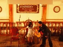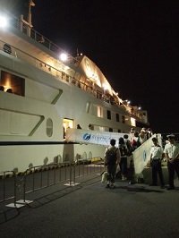乗船する船は、大型客船『シンフォニー モデルナ』でした。通常定員600名の客船ですが、「真夜中のピクニック船」イベントでは乗客は約120名でしたから、かなり船内がゆったり利用できる贅沢なクルーズという事になります。今のところ、このオールナイトクルーズのイベントは毎年夏の一晩だけ行われているそうです。見逃さず参加出来てラッキーでした♪