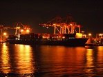 さて、船上から見る光景ですが、出航直後はキラキラと宝石箱の様に美しい夜景ですが、進むにつれコンテナ船に貨物が積載されている姿がオレンジ色の光の中に浮かんでいる場面や、更に川崎方面へ進んでいくと、工業エリアから煙が上がっている場面が見えたりと、同じ海上から見る夜景でも全く違った場面を見ることが出来て興味深かったです。航路に沿って水平線に光の線が点描の様に続き、これが全く途切れない。なんだか飛行場の滑走路を彷彿させるような不思議な光景でした。