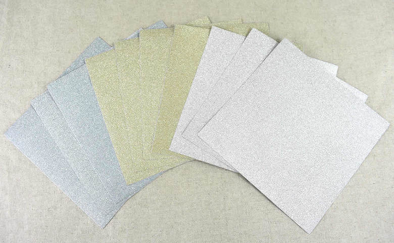 キラキラとしたグリッターが、光にあてることでさらに輝きます。色はシルバーとゴールド、ブルーの計3種類。サイズは15×15cmで、ふつうの折り紙の大きさとほとんど変わりません。