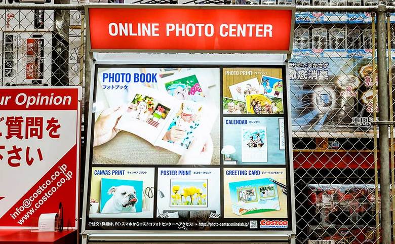 コストコには、写真のプリントサービス(有料)もあります。通常のフィルム現像のほか、フォトブックやグリーティングカード、またインテリアとして活用できるA1・A2サイズのポスタープリントや、木枠に布地を巻きつけたキャンバスに写真をプリントしてくれるサービスも。