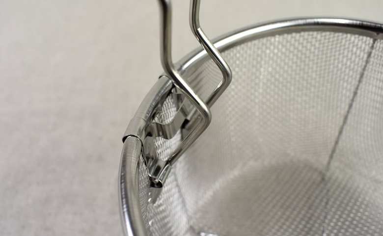 一見すると“ただの小さいザル”ですが、最大の特徴は「取っ手」が折りたためる点。ザルの内側にしまい込めば、収納時に取っ手が邪魔になることはありません。