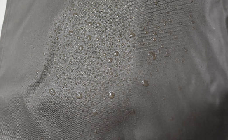 同商品は“水を弾く”生地で作られた防水性のあるエプロン。実際に生地を触ってみると、思ったよりも厚みがあって“ツルツル”としたビニールのような触り心地です。体に水がかかっても“衣服の濡れ”をしっかり防げそう。