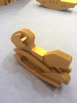 公園にも似たような遊具がありますが、これは段ボールの遊具なので、揺れ方も穏やかなのでケガの心配もなく安心して遊べていました。30kg以上の梱包材に使われているという3層の構造になっている段ボールを重ねているので、大人が乗ってもびくともしなかったです。