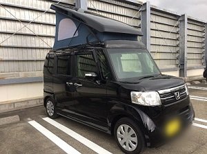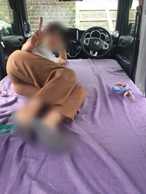 我が家の軽キャンピングカーはホンダの人気車種「NBOX」を改造したものになります。 キッチンや冷蔵庫などの装備はありませんが、クーラーボックスを持参し、屋外で調理するので特に必要ありません。 そしてなんとこの車は4人まで就寝できます! 席をすべて倒し、短時間で膨らませられるエアマットを装着します。