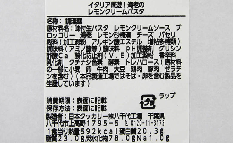 本格味を堪能できるローソンの「海老のレモンクリームパスタ」。一口食べれば“イタリア気分”を楽しめるはずですよ。