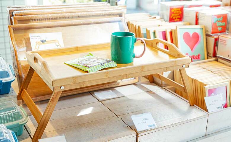 トレーにそのまま足がついたような、とても小さなテーブルですが、これはベッドの上で使うもの。そう、映画とかでみたことのある、あれです!食事をトレーの上に揃えて、そのままベッドへ。ナチュラルな素材感なので、どんなインテリアにもしっくり。子どもが絵を描いたり塗り絵をしたり…といった、ちょっとしたことにも便利そうですね。