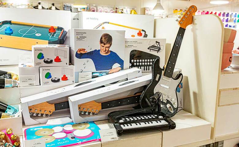 フライング タイガー コペンハーゲンには、おもちゃの楽器もあります。1000円台とリーズナブルなのにもかかわらず、本格的な構造!しっかりとギターらしいサウンドも奏でることができ、十分に楽しむことができます。これを機に、楽器に興味を示すというキッズも多いとか!