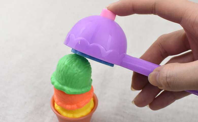 同商品に入っているおもちゃは、カラフルで可愛い6個のアイスクリーム。カップとコーンに、アイスをすくうためのディッシャーも付属していますよ。